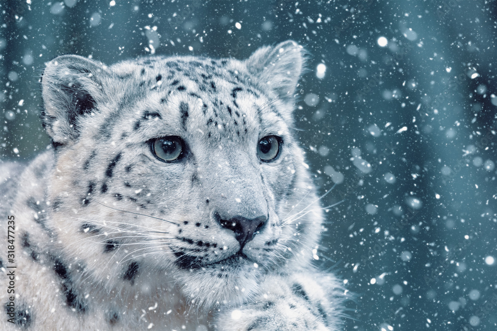 Aluminium Dibond een van de mooiste grote katten, sneeuwluipaarden - Irbis, Uncia uncia #318477235