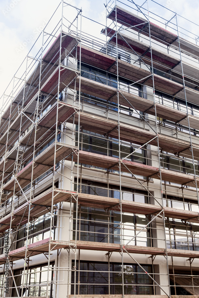Fotobehang Steigers op een bouwplaats, hoogbouw in aanbouw #48112153