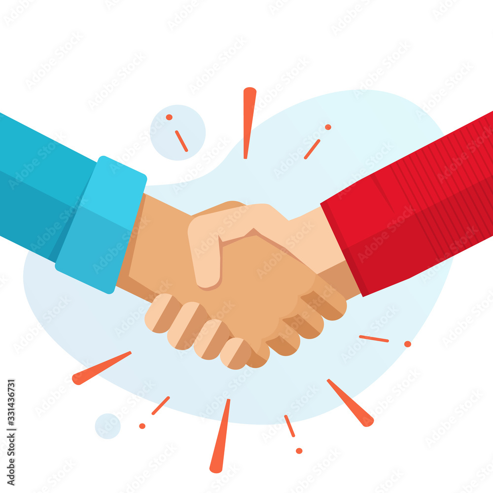 Canvas Hand schudden handen of handdruk vector platte cartoon afbeelding geïsoleerd, concept van succes partnerschap vriendschap deal of welkom overeenkomst gebaar modern design afbeelding