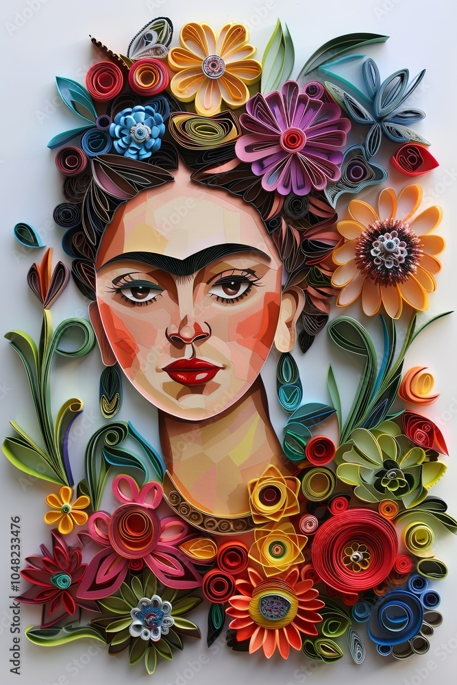 Fleece deken Vibrant Paper Quilling Art of a Woman Surrounded by Colorful Flowers, Celebrating Female Empowerment and Natures Beauty in a Creative Design #1048233476