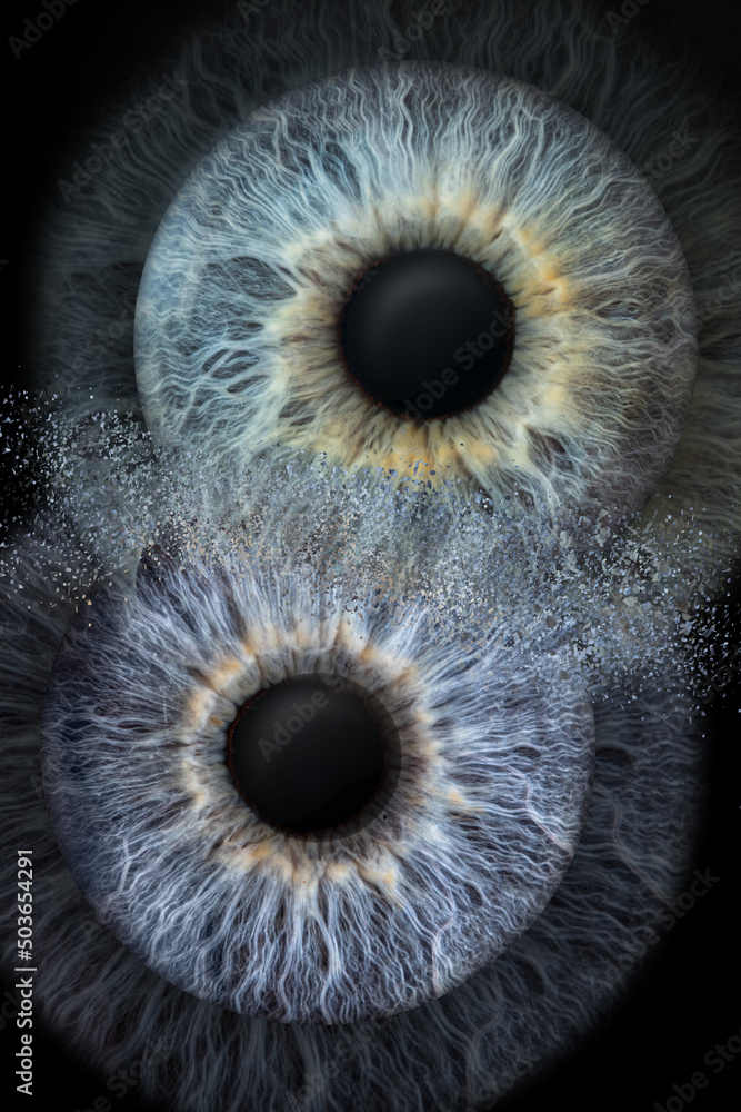 Inductie beschermer photo of two eyes taken in macro mode, different persons, same color and simulating collision #503654291