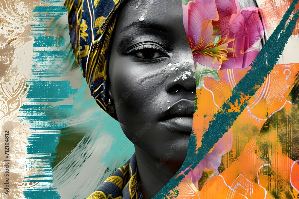 Inductie beschermer Een creatieve montage waarin texturen en het gezicht van een vrouw samenkomen en de verschillende lagen van vrouwelijkheid symboliseren #712104812