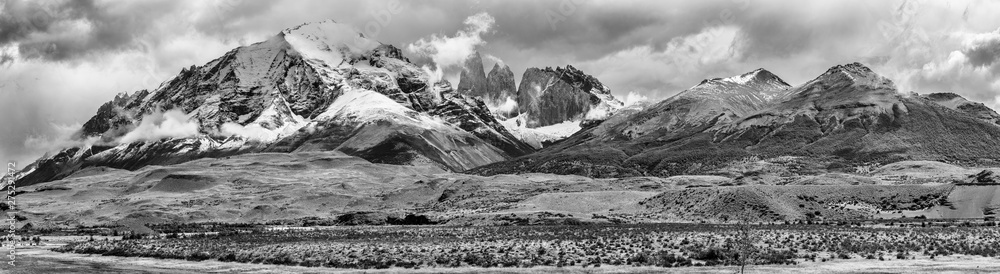 Inductie beschermer Torres del Paine peaks coming from clouds #275291472