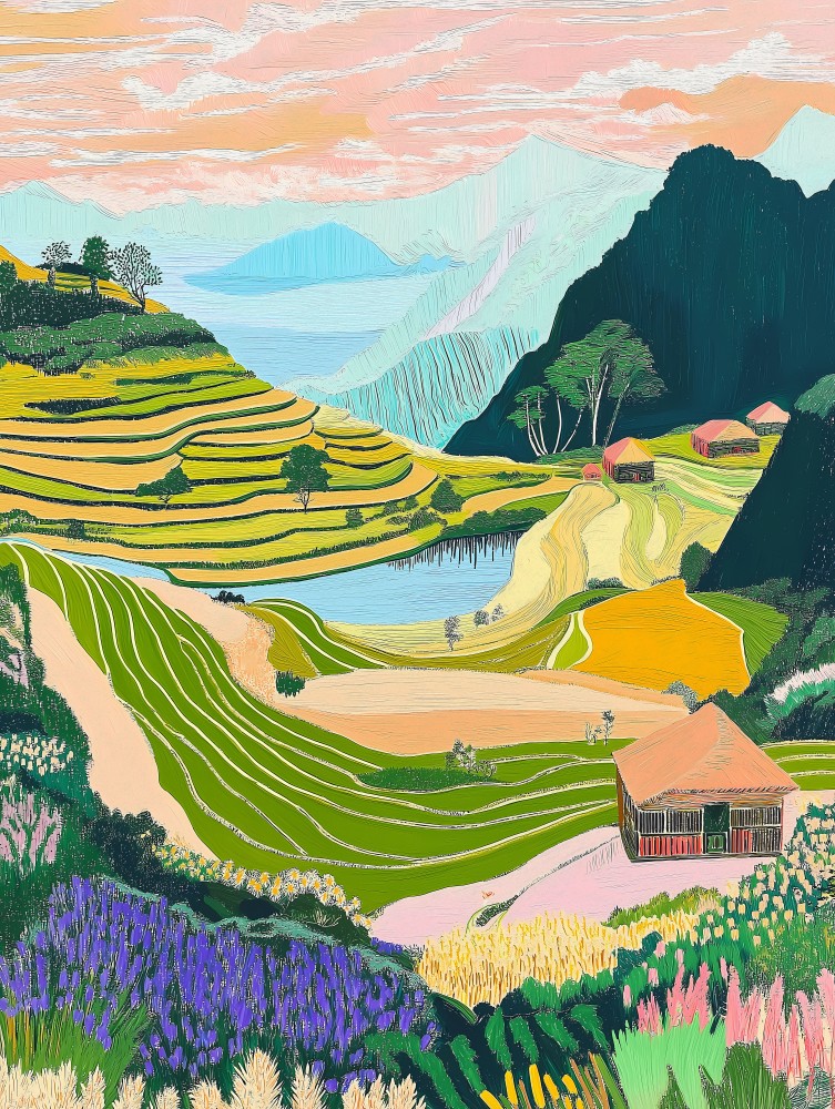 Bestel Rising Rice van Artclaud op aluminium, muurcirkel, canvas, wandkleed, behang, spatwand, textielframe of een andere creatieve wanddecoratie. Kies je product, materiaal en formaat en ontwerp je unieke print!