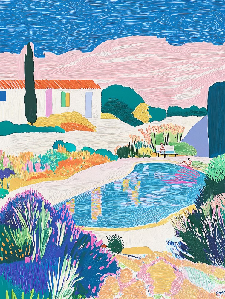 Bestel Zomerhuis van Artclaud op aluminium, muurcirkel, canvas, wandkleed, behang, spatwand, textielframe of een andere creatieve wanddecoratie. Kies je product, materiaal en formaat en ontwerp je unieke print!