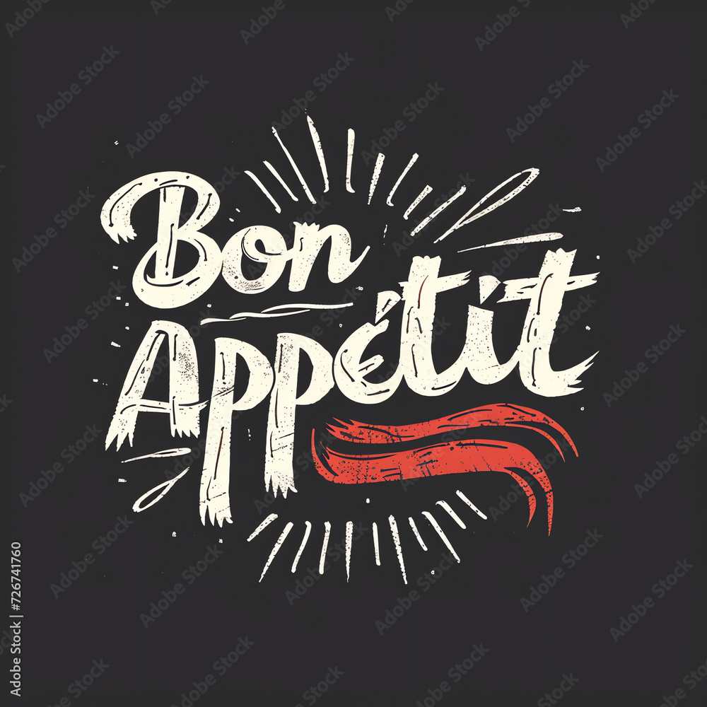 Keuken achterwand Bon Appetit. Hand drawn lettering with decorative elements. Vector illustration.