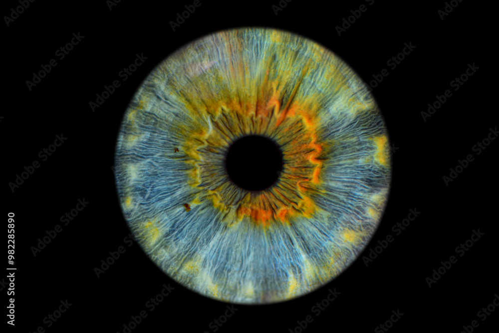 Muurcirkel Close up of eye iris on black background, macro, photography #982285890