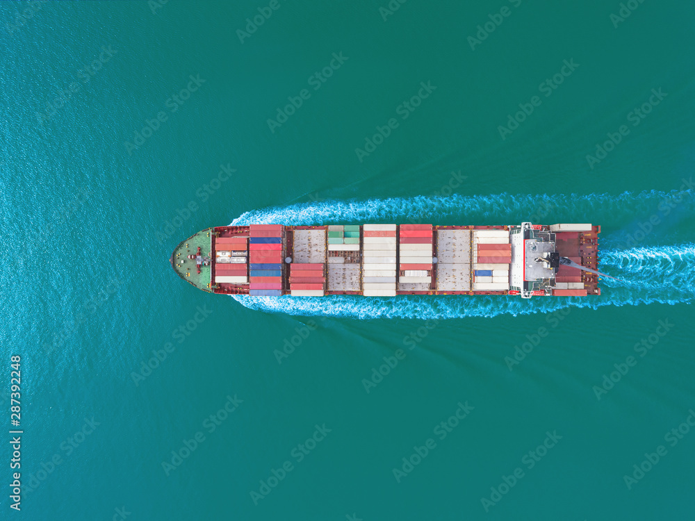 Muurcirkel Luchtfoto bovenaanzicht Containerschip op zee voor logistiek, import export, verzending of transport. #287392248