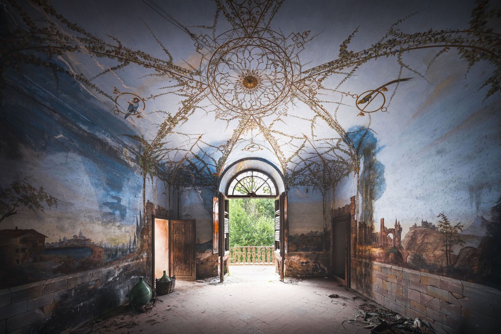 Bestel Vogelkooi Fresco in Vervallen Villa van Roman Robroek op aluminium, muurcirkel, canvas, wandkleed, behang, spatwand, textielframe of een andere creatieve wanddecoratie. Kies je product, materiaal en formaat en ontwerp je unieke print!