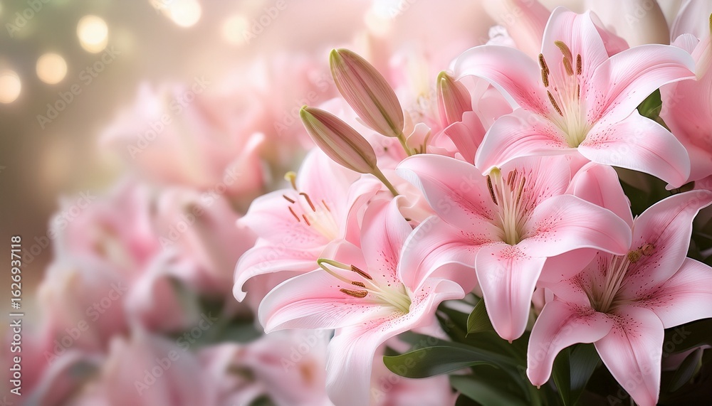 Plexiglas schilderij elegant pink lily bouquet soft light feminine floral background #1626937118