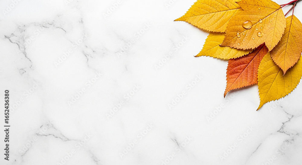 Plexiglas schilderij Fondo de mármol blanco con hojas #1652436380