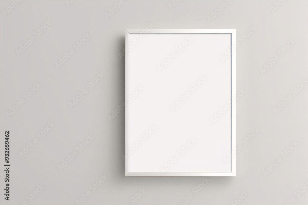 Plexiglas schilderij Imagen mínima de marco cuadrado blanco vacío simulada colgada sobre fondo de pared blanca con luz y sombra de ventana. aislar imagen #932659462