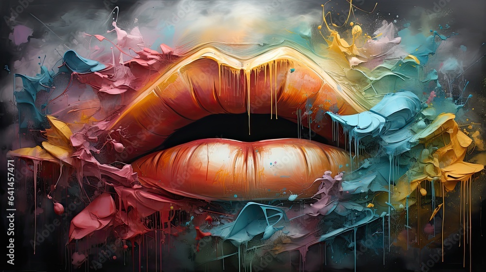 Plexiglas schilderij Graffiti fantasie kleurrijke lippen. #641457471