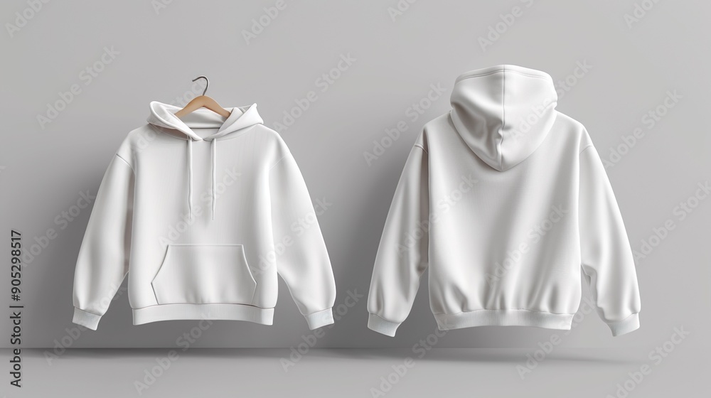 Plexiglas schilderij Maqueta de sudadera de color blanco con capucha . Vista frontal y posterior. #905298517