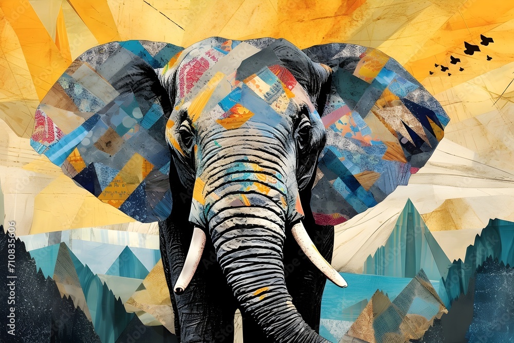 Plexiglas schilderij Olifant, Gajah, zeer gestructureerd, mixed media collageschilderij, randabsurdisme, bekroonde halftoonpatroonillustratie #710835606