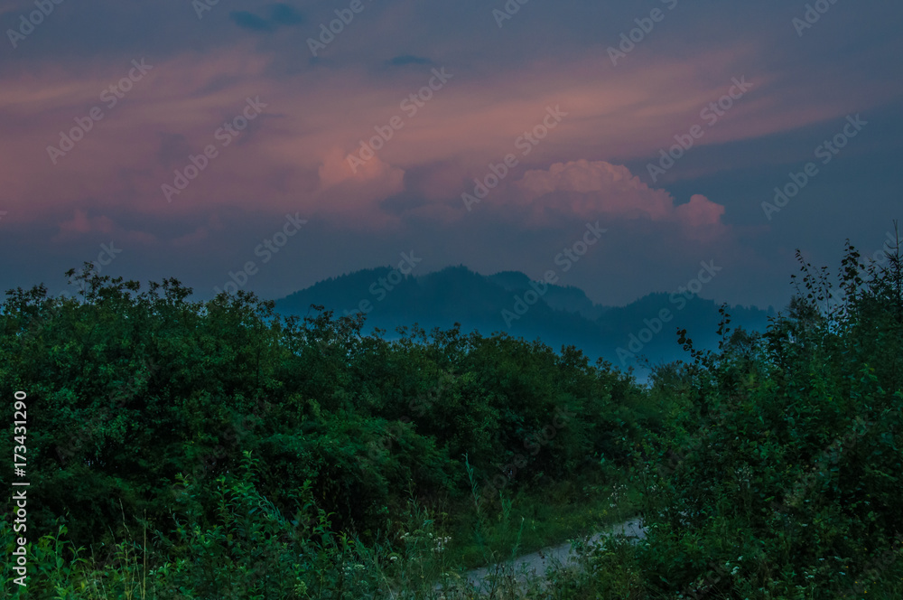 Plexiglas schilderij Weg en glorieuze dageraad over bergen #173431290
