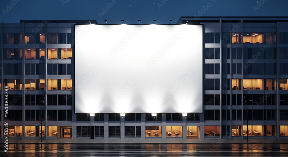Akoestisch textielframe (Artframe) Blank white advertising billboard on a office building wall at night, mockup #1644634788