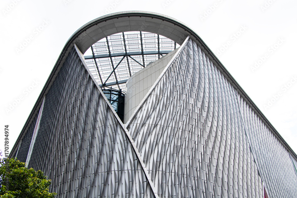 Akoestisch textielframe (Artframe) Landscape structure museum building bright sunlight and sky white is background. Architecture of construction. Large building structure in business district. Landmarks tourist attractions in big city. #1707894974