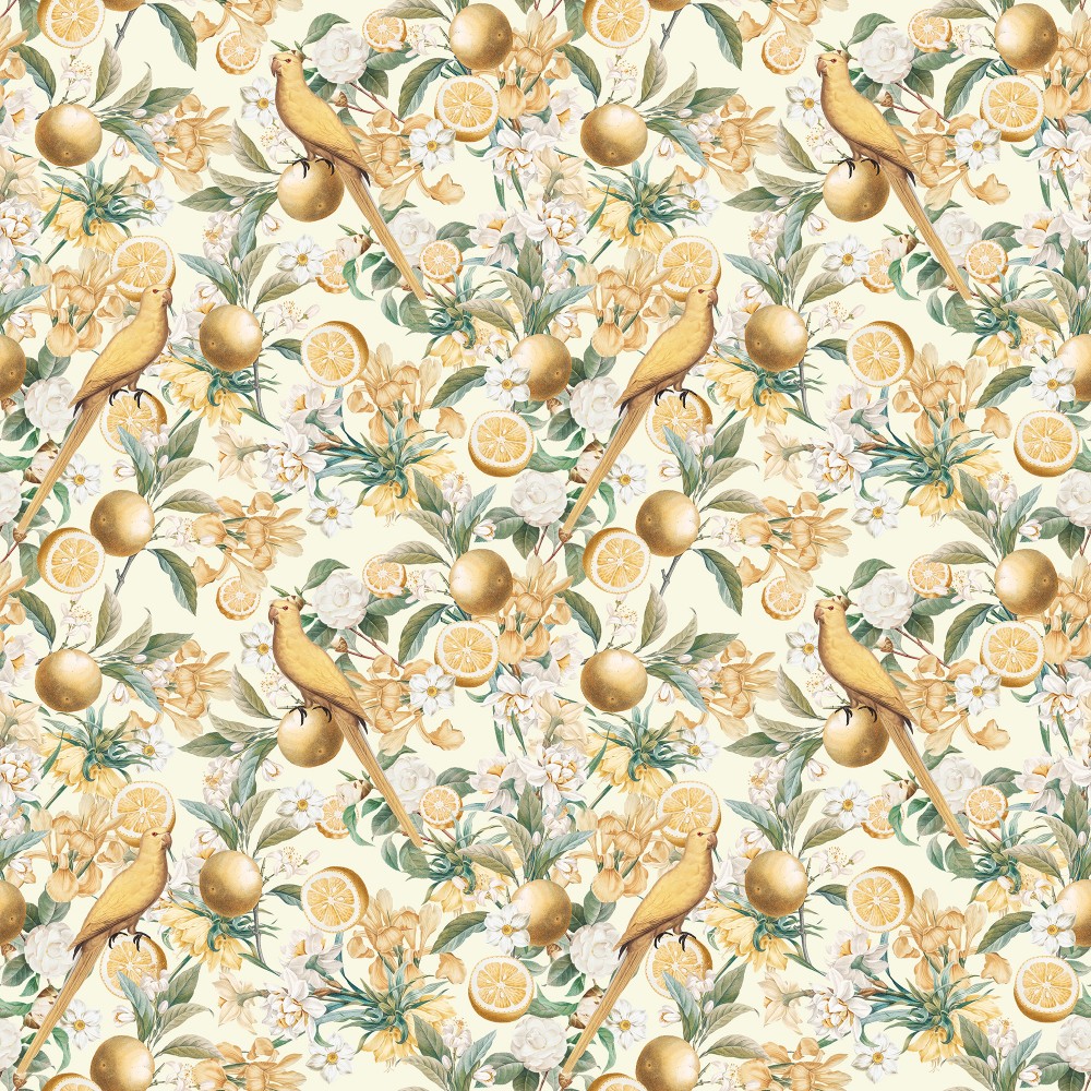 Bestel Yellow Fruits & Birds Wallpaper van Marja van den Hurk op aluminium, muurcirkel, canvas, wandkleed, behang, spatwand, textielframe of een andere creatieve wanddecoratie. Kies je product, materiaal en formaat en ontwerp je unieke print!