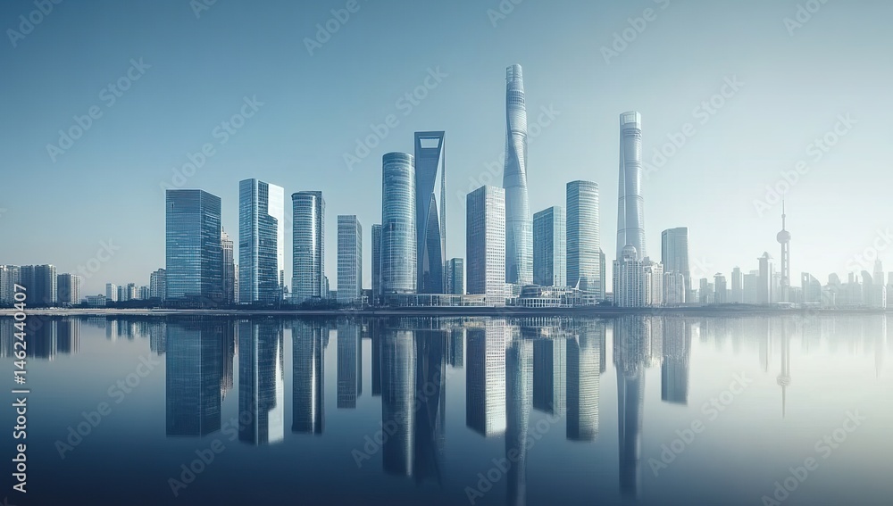 Akoestisch textielframe (Artframe) Panoramic City Skyline Reflecting On Water #1462440407
