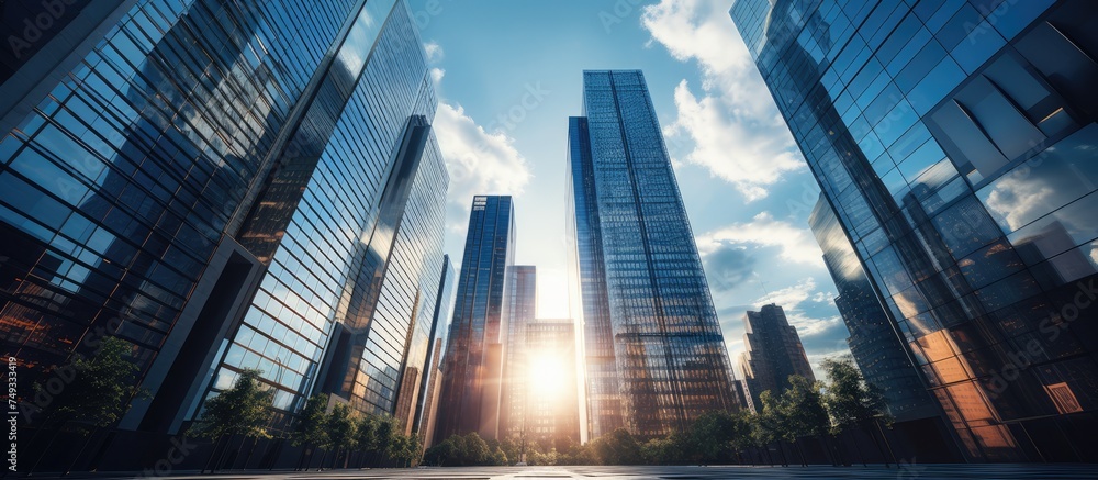 Akoestisch textielframe (Artframe) skyscraper view, low angle view, focus from bottom to top #749333419