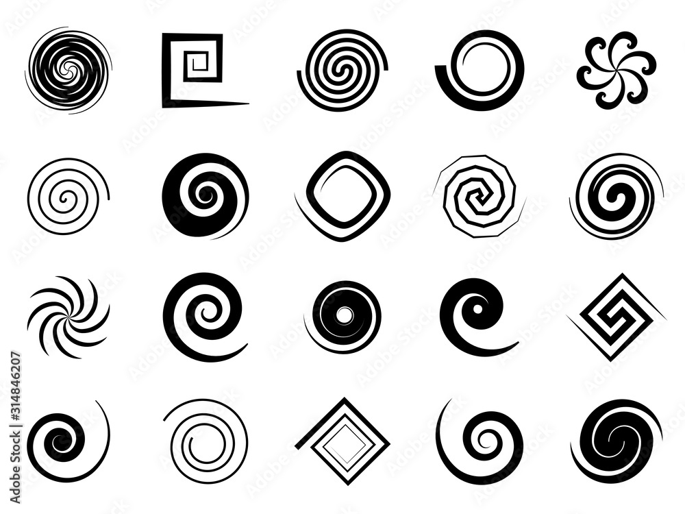 Akoestisch textielframe (Artframe) Spiraal wervelt. Snelheid cirkelvormig symbool, gedraaide wervelelementen, psychedelische hypnose symbolen, moderne textuur kunst logo vector tekenen #314846207