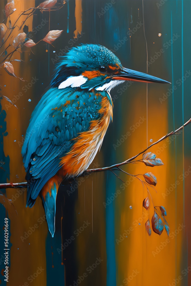 Textielposter This realistic painting illustration, depicts a hummingbird perched on a branch. The vibrant colors and intricate details make it come to life, giving the viewer a sense of serenity and beauty #560291649