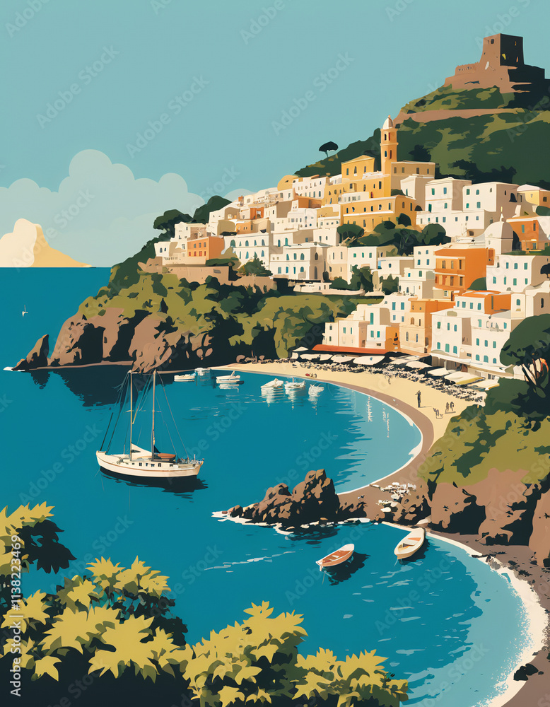 Textielposter Italy: Poster Illustration Travel Print Decor Gift Paper Canvas Wall Retro Art
