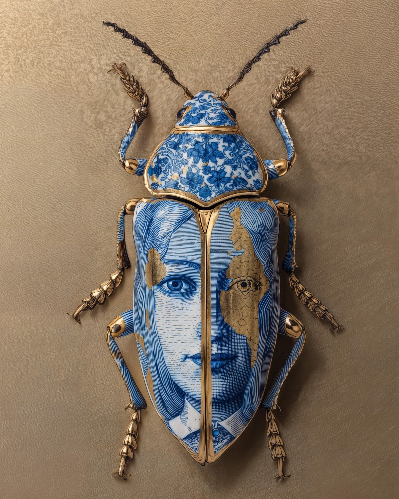 Bestel Beetle Face van Charlie Moon op aluminium, muurcirkel, canvas, wandkleed, behang, spatwand, textielframe of een andere creatieve wanddecoratie. Kies je product, materiaal en formaat en ontwerp je unieke print!