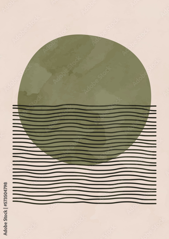 Wandkleed Boho poster with abstract shapes and lines. Contemporary minimalist art. contemporary wall decor. contemporary wall decor. Sage green Collection of modern minimalist abstract aesthetic illustrations.