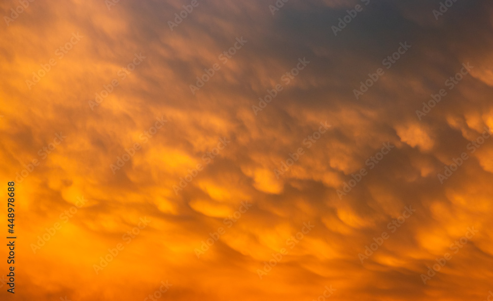 Wandkleed Zonsondergang mammatus wolken na een storm. Servië